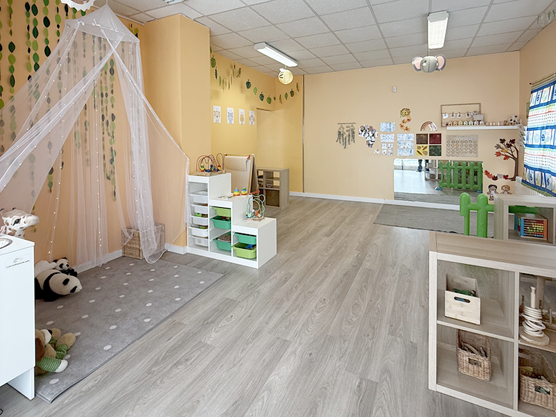 Las aulas se dividen en diferentes espacios que invitan a explorar y aprender de forma natural.
