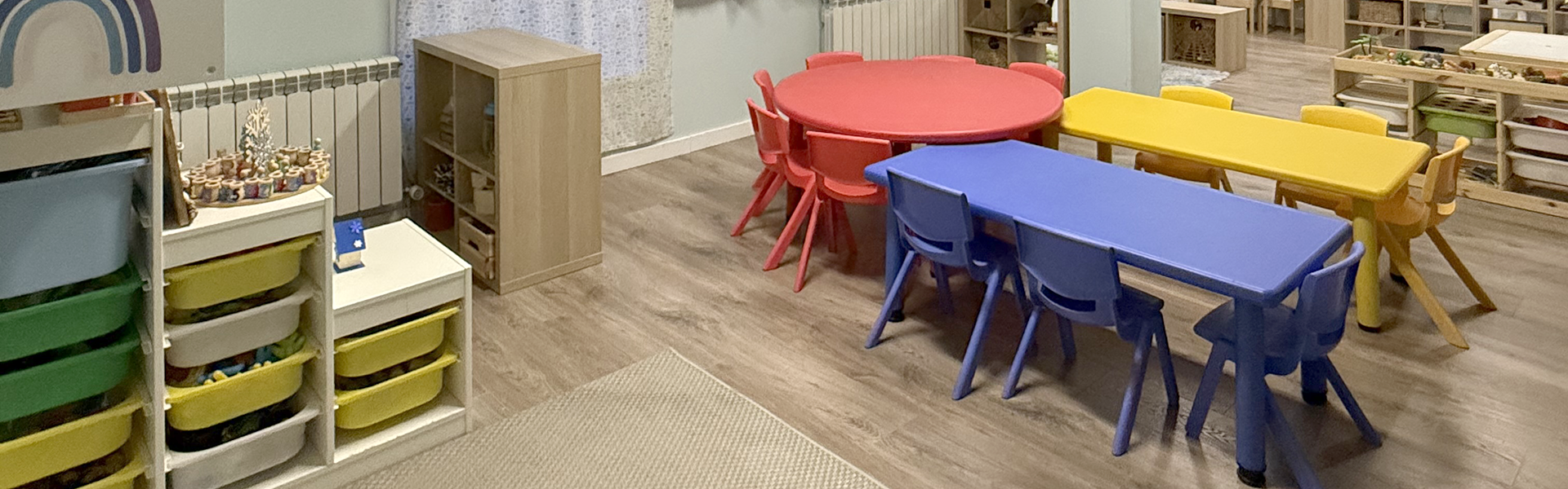 Nos inspiramos en pedagogías activas como Montessori y Reggio Emilia y trabajamos con la organización del aula por rincones, formación realizada con Mari Carmen Conde.